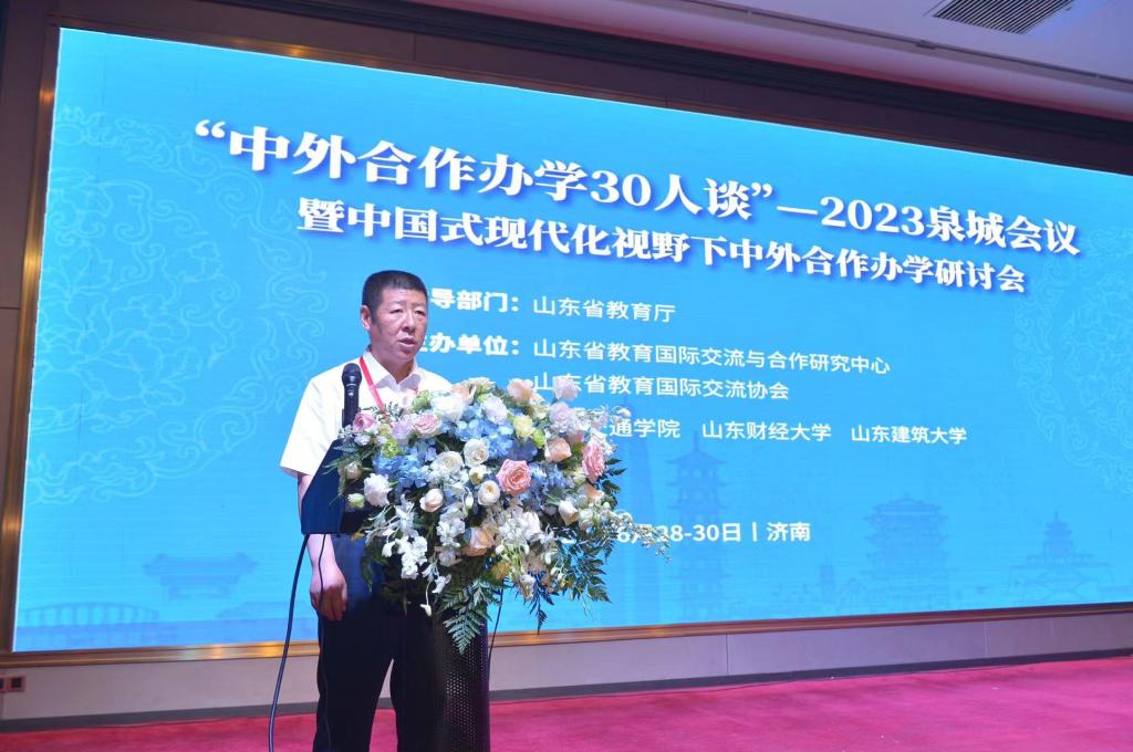 6月28-30日,“中外合作办学30人谈”——2023年泉城会议暨中国式现代化视野下中外合作办学研讨会在济南成功举办。本次会议由山东省教育国际交流与合作研究中心(山东财经大学国际与比较教育研究院)、山东省教育国际交流协会主办,山东交通学院、山东财经大学、山东建设大学承办。山东省教育厅副厅长孙晓筠、山东交通学院校长陈松岩、山东财经大学副校长陶虎出席会议并致辞。