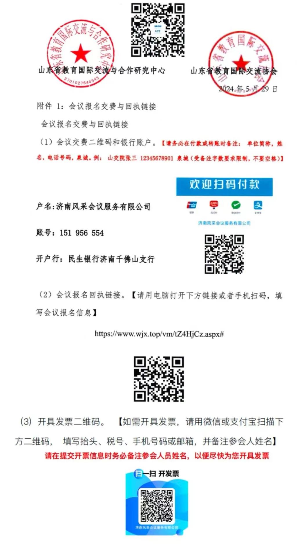 3.交费方式:扫码支付和转账支付,请查看附件1收费码和账号。
