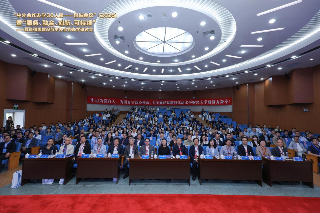 2025年5月9-10日,在山东省教育厅指导下,研究中心协同山东省教育国际交流协会共同主办,山东财经大学与山东建筑大学承办的第五届“中外合作办学30人谈-泉城会议”(2025)暨“服务、融合、创新、可持续”---教育强国建设与中外合作办学研讨会在济南成功举办。山东省教育厅副厅长李鹏、国际处处长王夫海,山东财经大学书记查玉喜、校长洪俊杰、副校长彭红枫,山东省教育国际交流协会副会长刘永波、孙祖兴,鲁东大学党委书记王庆,山东建筑大学副校长王清标等出席会议。